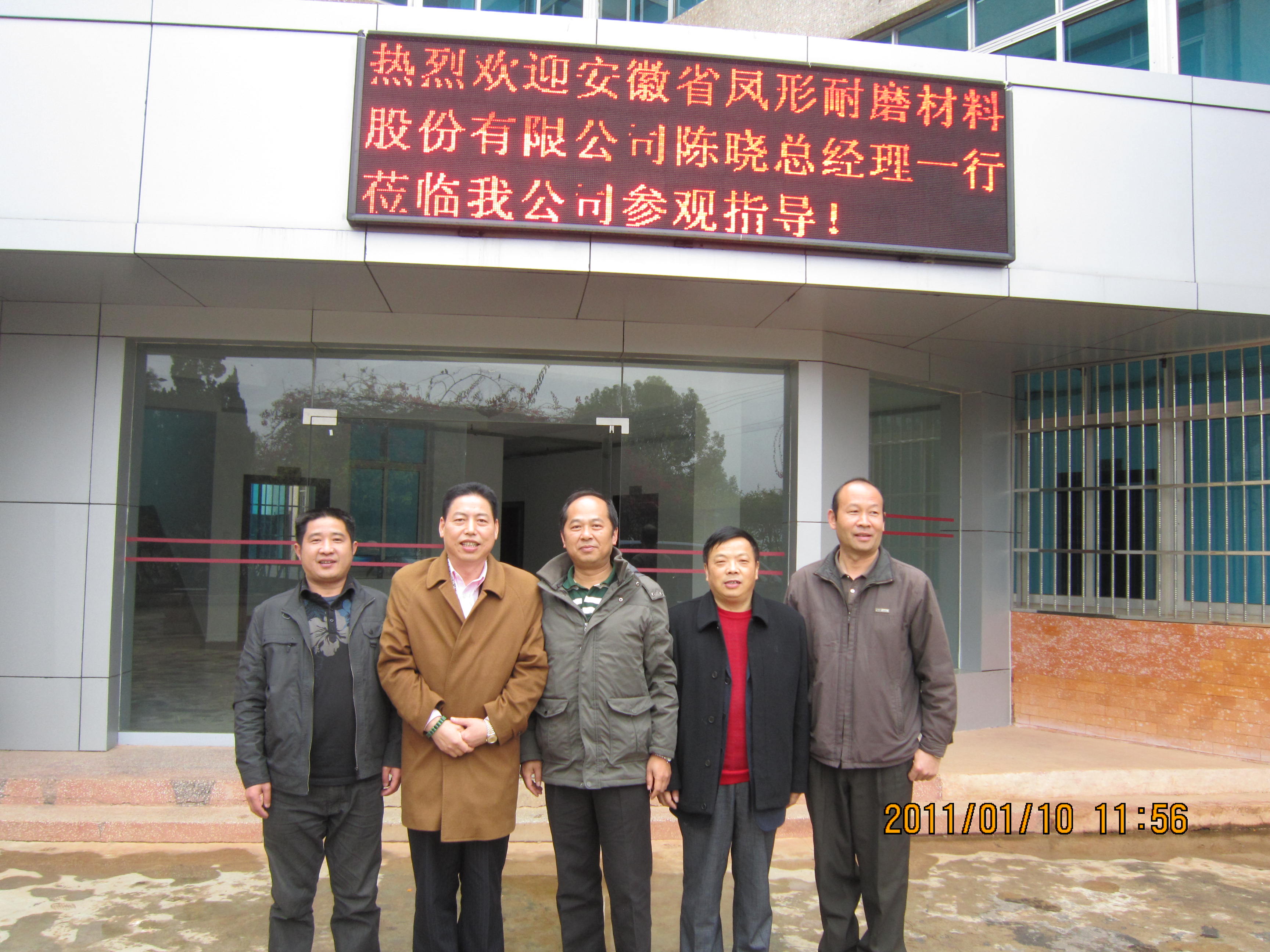 作者:管理員時間:2011-01-112011年1月10日,安徽省鳳形耐磨材料股份有限公司陳曉總經(jīng)理一行蒞臨我公司參考指導(dǎo),雙方就耐磨材料的生產(chǎn)、銷售進(jìn)行了深入的經(jīng)驗(yàn)交流。編輯:范太寶 校對:張 文...